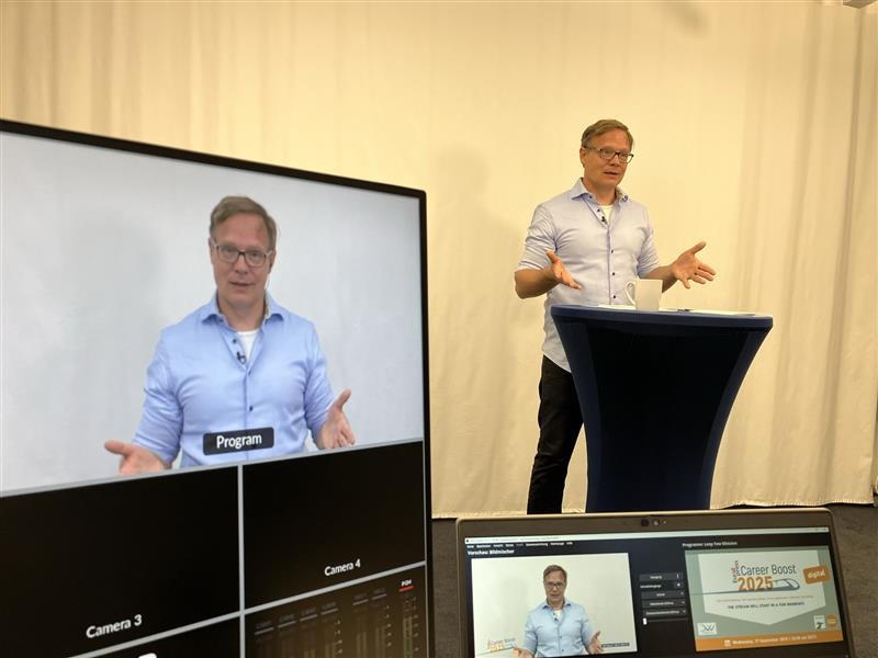 „Ich denke, dass beim digitalen Boost die Einstiegshürde für die Bewerberinnen und Bewerber geringer ist. Sie müssen keine Reisekosten auf sich nehmen. Zudem pitchen sie von einem Ort ihrer Wahl, an dem sie sich wohl und sicher fühlen. Für die Recruiter ist der digitale Boost eine super Plattform, um direkt zu erkennen, wer sich in der digitalen Welt über virtuelle Kanäle und Plattformen präsentieren kann. Remote Meetings gehören schließlich bei vielen Jobs zum Daily Business“, sagt Daniela Hennig, Leitung Eventmanagement Technik & Verkehr, DVV Media Group.